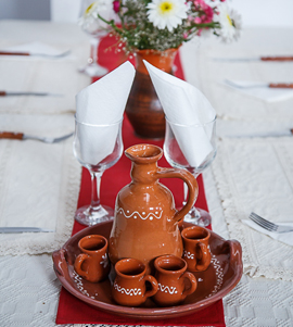 Va invitam sa gustati preparatele traditionale, gatite dupa randuiala din Codru precum: supele si zamurile, carnati si caltabosi, mamaliguta cu branza,clisa, ciolan la cuptor, sarmale, platouri traditionale, dar inainte de masa va cinstim cu o palinca traditionala de pruna, servita in cesti din lut, iar setea de dupa mancare se poate potoli cu vinuri servite din ulcele si cani de lut sau diverse sortimente de bere.